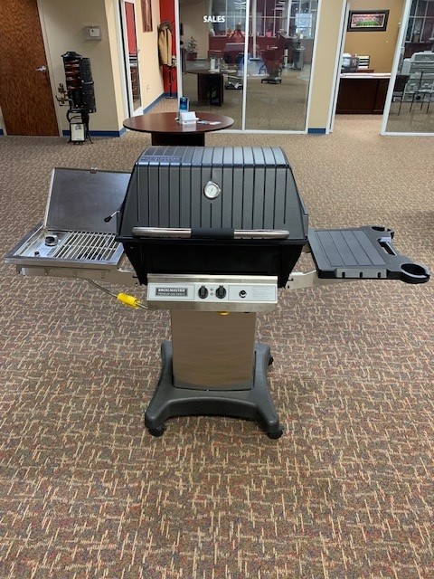 Cast aluminum grill head Stainless steel control panel Stainless steel bow tie burner Stainless steel folding retract-a-rack Your choice of natural gas or propane Flare Buster ceramic flavor enhancers Includes stainless steel multi-level grids. Maximum BTU Output: 36,000